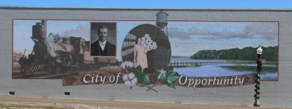 There it was, the slogan I’d been seeking. From the obvious age and condition of this huge mural I suspect the “City of Opportunity” slogan had been used for many many years some long time ago and the place just got weary of it and moved on. This was the only use of that slogan I found around town.