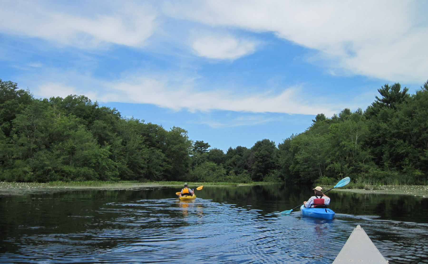 Unsettled weather the past week cancelled out two of the paddles I wanted to do, so when the sun came out I was eager to get going. I did short stretches of both the Pachaug and the Chicopee rivers, the former in Griswold, CT, and the latter in Wilbraham, MA. Because gas is cheaper in Massachusetts than in Connecticut (by nearly 20 cents a gallon!) I try to plan something up there about the time the tank’s getting empty. All I need is enough for the 20 to 30 miles it takes me to get across the state line.