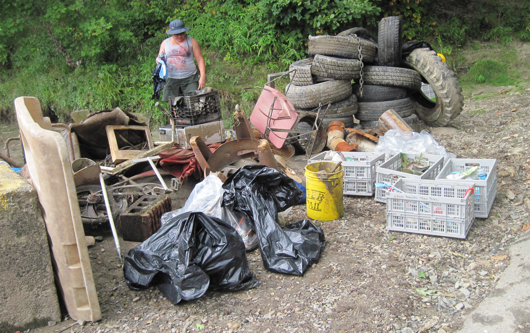 Above, group shot with the pile of trash we picked up. I am third from left in back row. Below, still life of the trash.