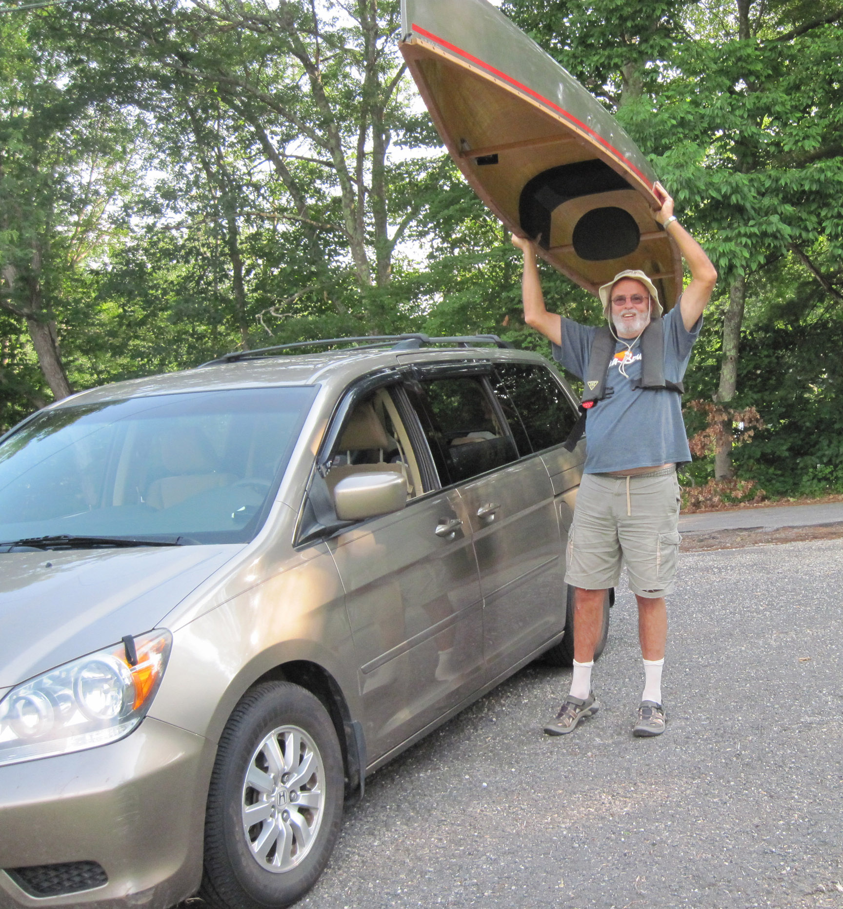 At 15 feet long, 24 inches at widest point, and weighing 24 pounds, it is a huge change from the Grumman at 17 feet long, 36 inches wide and 75 pounds. I miss the luxury of the super-stable, SUV-like Grumman, but I don’t miss pushing it around with a paddle. And I certainly don’t miss moving it around on land either! Keeping it for sailing, trash pick-up trips and when I have a passenger, of course.