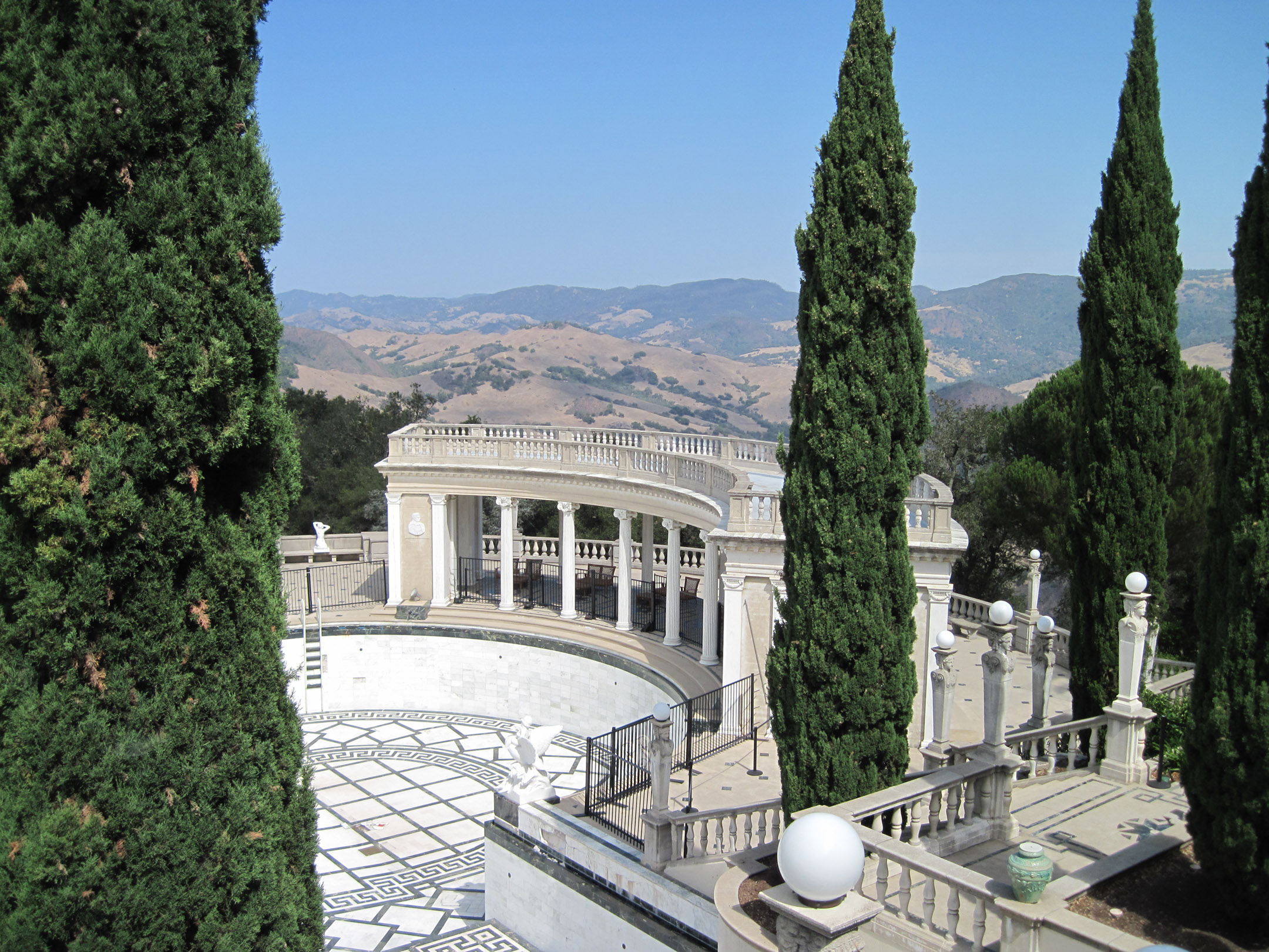 I visited the Hearst Castle in San Simeon, CA, today and saw lots of places where I’d like to be served breakfast as the sun rises on a cool summer morning. That’s the Pacific Ocean off in the distance.