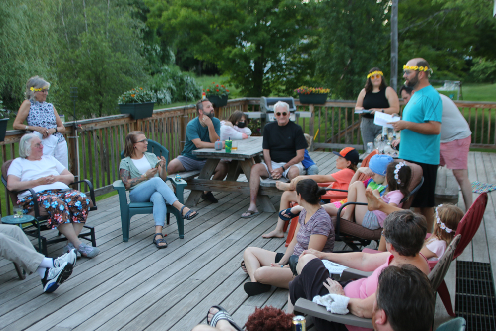 Plans for a celebration of his life were made for that summer of 2021, giving family in Florida and elsewhere time to plan. Cousins Amy and Jenn (next generation behind me) found a large former inn in nearby Bradford we could rent for the travelers. It was a reeely BIG house! And it needed to be. The out-of-town crowd numbered 17.