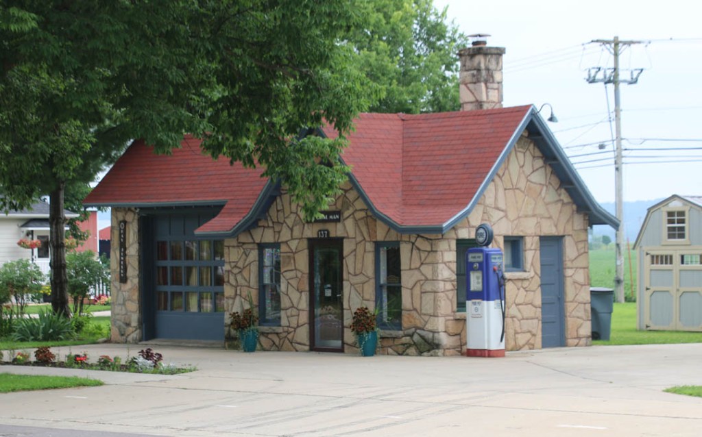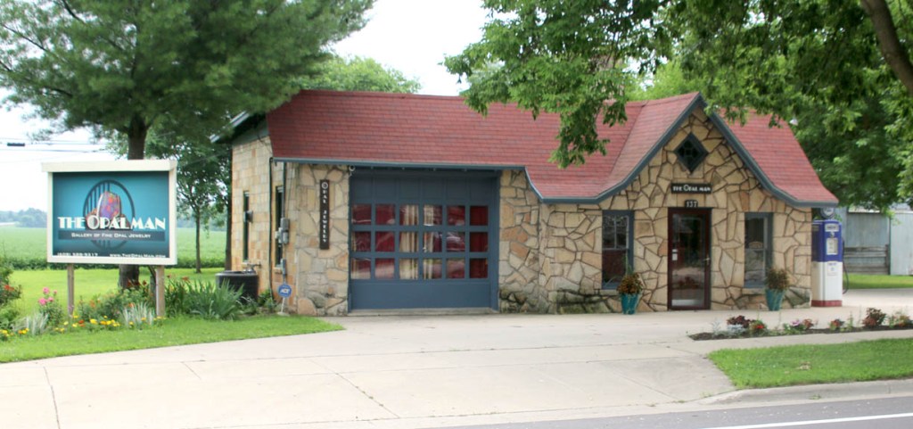 I made no attempt to document this family history and ended up with only these photos from the trip, of this nicely kept former gas station in Spring Green that is now an opal gallery. You can go here to see my entire collection of recycled gas stations.