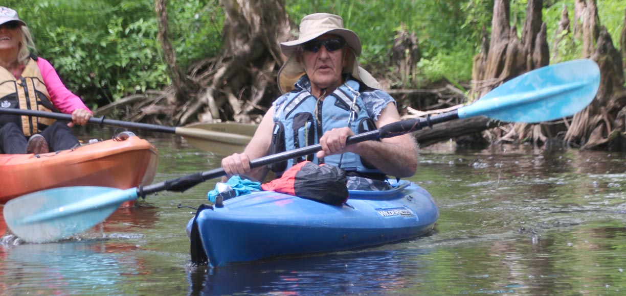 And just in case any tab vets are reading this, here’s what Mr. Gibson and I look like these days. That’s the creek at Rod’s place in Georgia in the background.