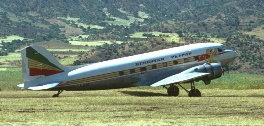 Then and now: A DC-3 on the grass runway at Lalibela in the 1970’s and today a prop jet on concrete and a terminal building.