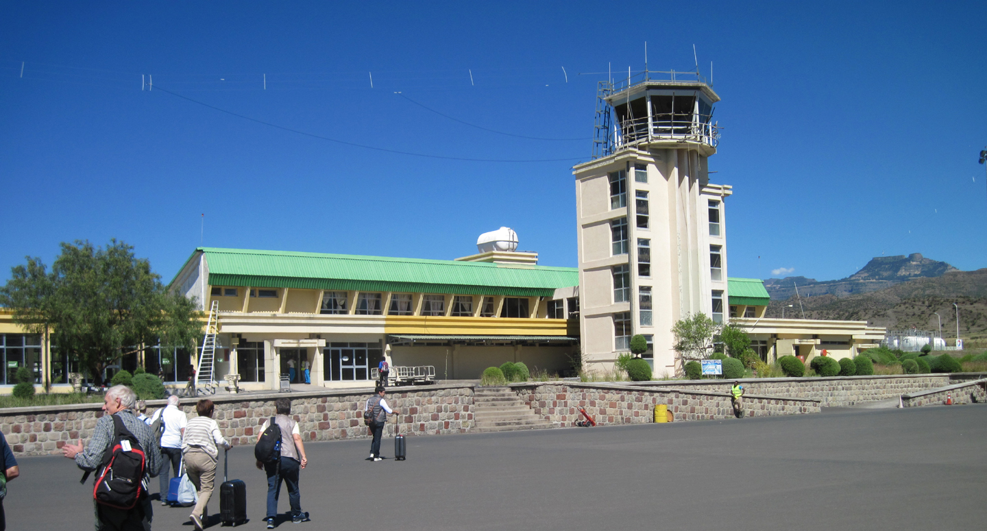 Then and now: A DC-3 on the grass runway at Lalibela in the 1970’s and today a prop jet on concrete and a terminal building.