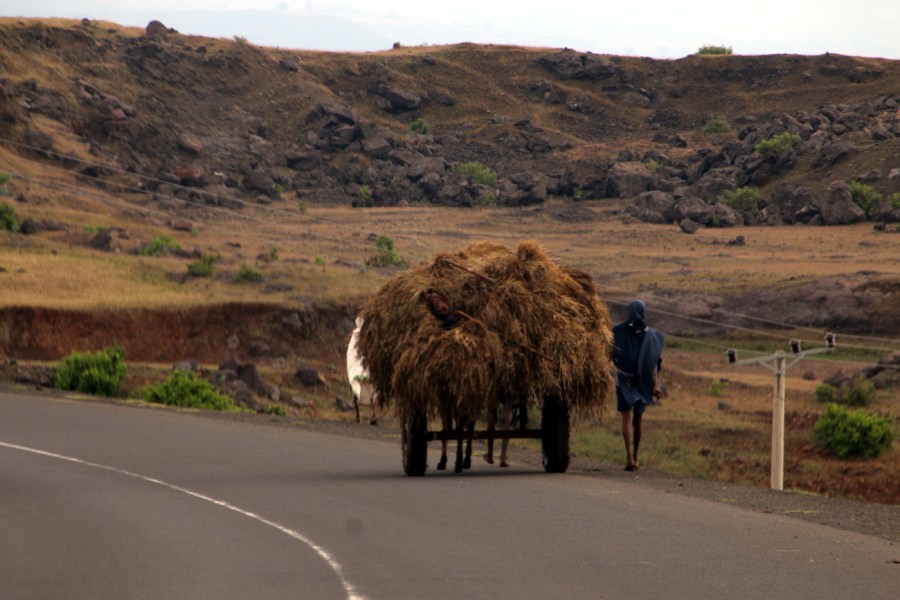 On the road to Gondar. The one thing in this photo you wouldn’t see 50 years ago is the power pole. And maybe the tires and axel would be wooden, depending on the wealth of the owner.