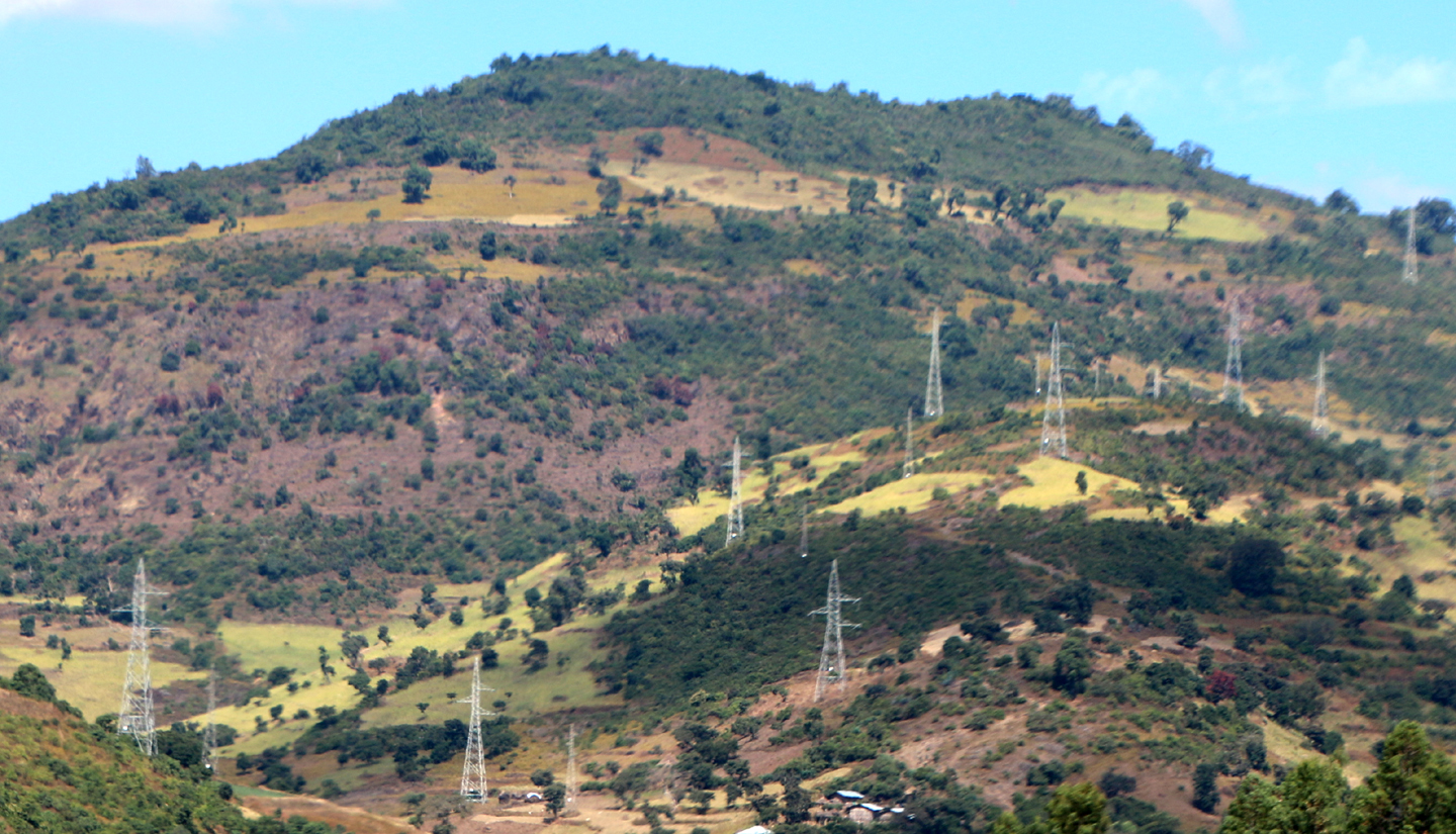 On the road to Gondar. Electrical transmission lines cross the country.