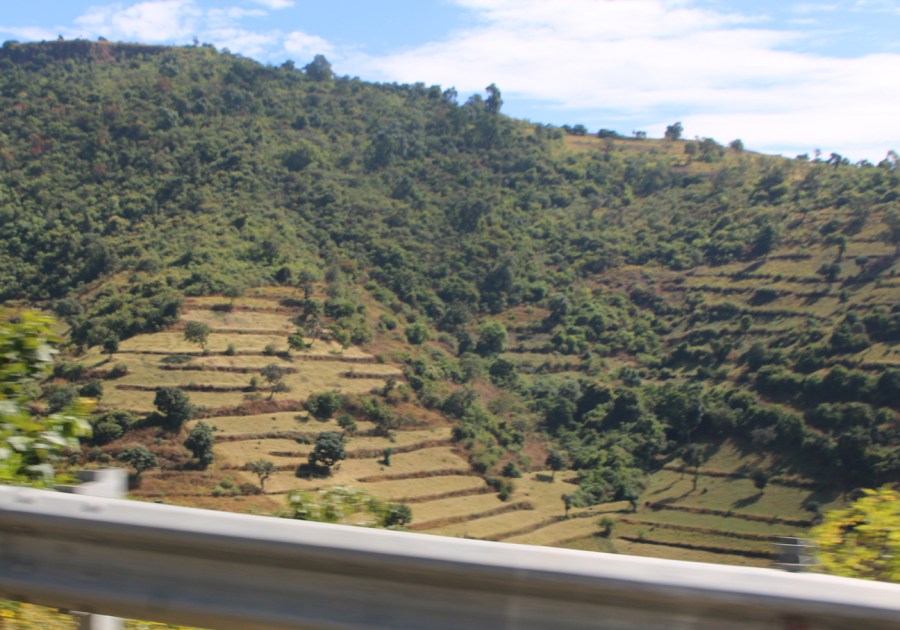 On the road to Gondar. Small fields, hand-plowed with oxen, are terraced.