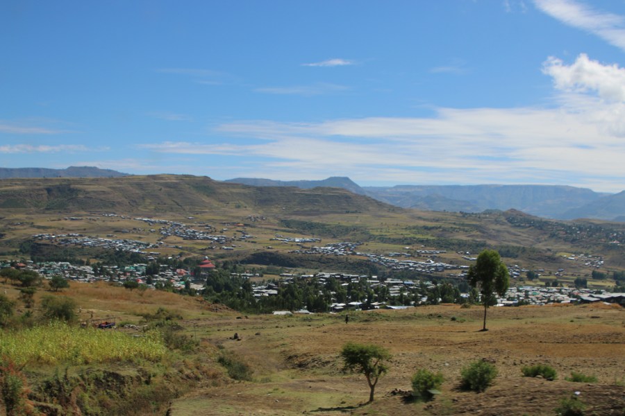 On the road to Gondar. Fifty years ago there would be round huts with thatch roofs in a scene like this, not restaungular construction with tin roofs.