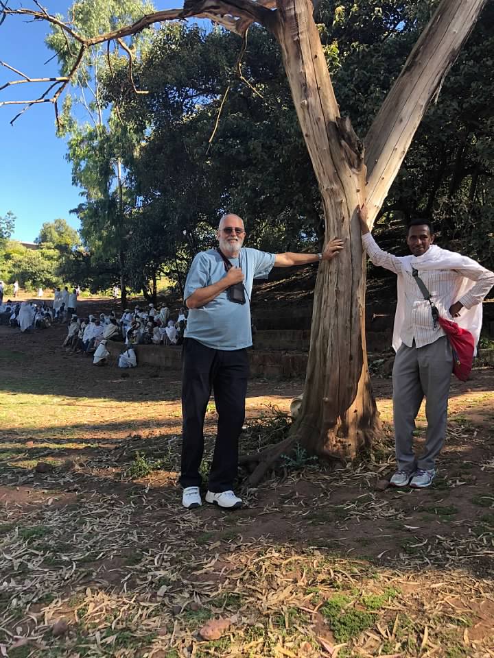 After all that exhausting sightseeing the guide and I take a break in the shade of a tree.