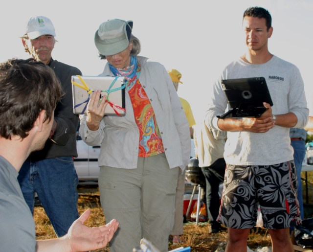 Susan worked the portage into the midday podcast. Subjects of other podcasts on the trip included our safety equipment, our route, our food and water, the plants and animal life we saw, evidence of Everglades restoration, and what we heard and saw at night along the way. Because it was an interactive broadcast, we were also able to answer specific questions from the students.